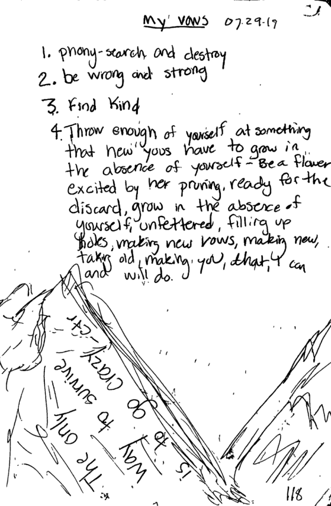 Throw enough of yourself at something that new “yous” have to grow in the absence of yourself. Be a flower excited by her pruning, read for the discard, grow in the absence of yourself unfettered, filling up holes and making new, taking old, making you… that I can, and will do.